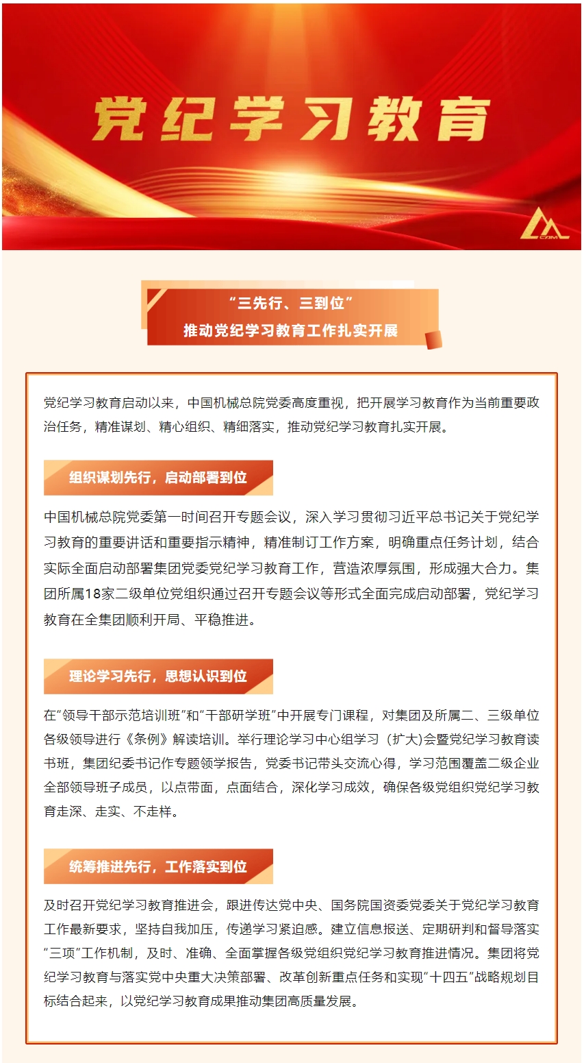 中國機械總院:三先行 三到位 推動黨紀學習教育工作扎實開展